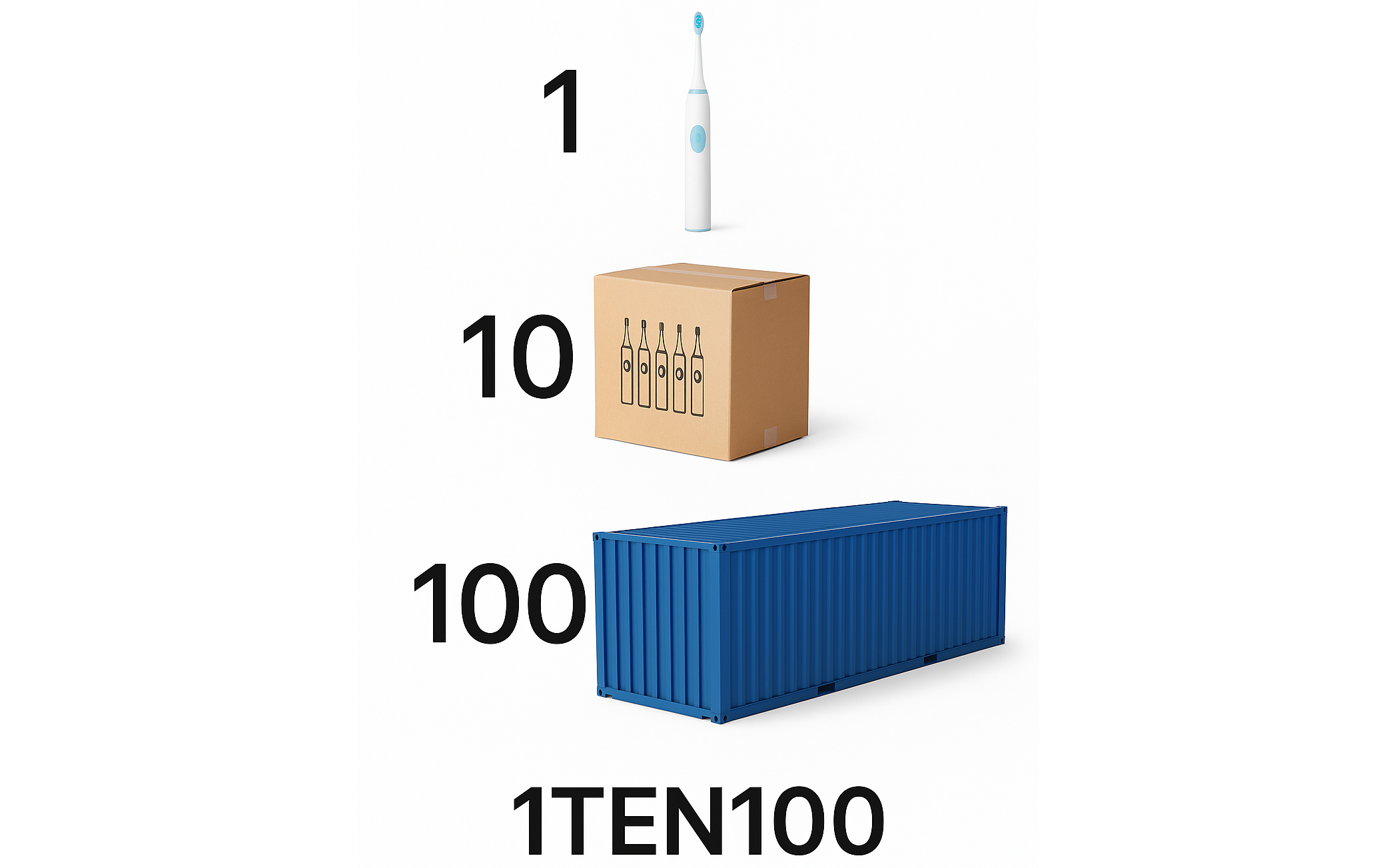 100 — Bulk orders and wholesale operations, optimized for container or air freight consolidation.